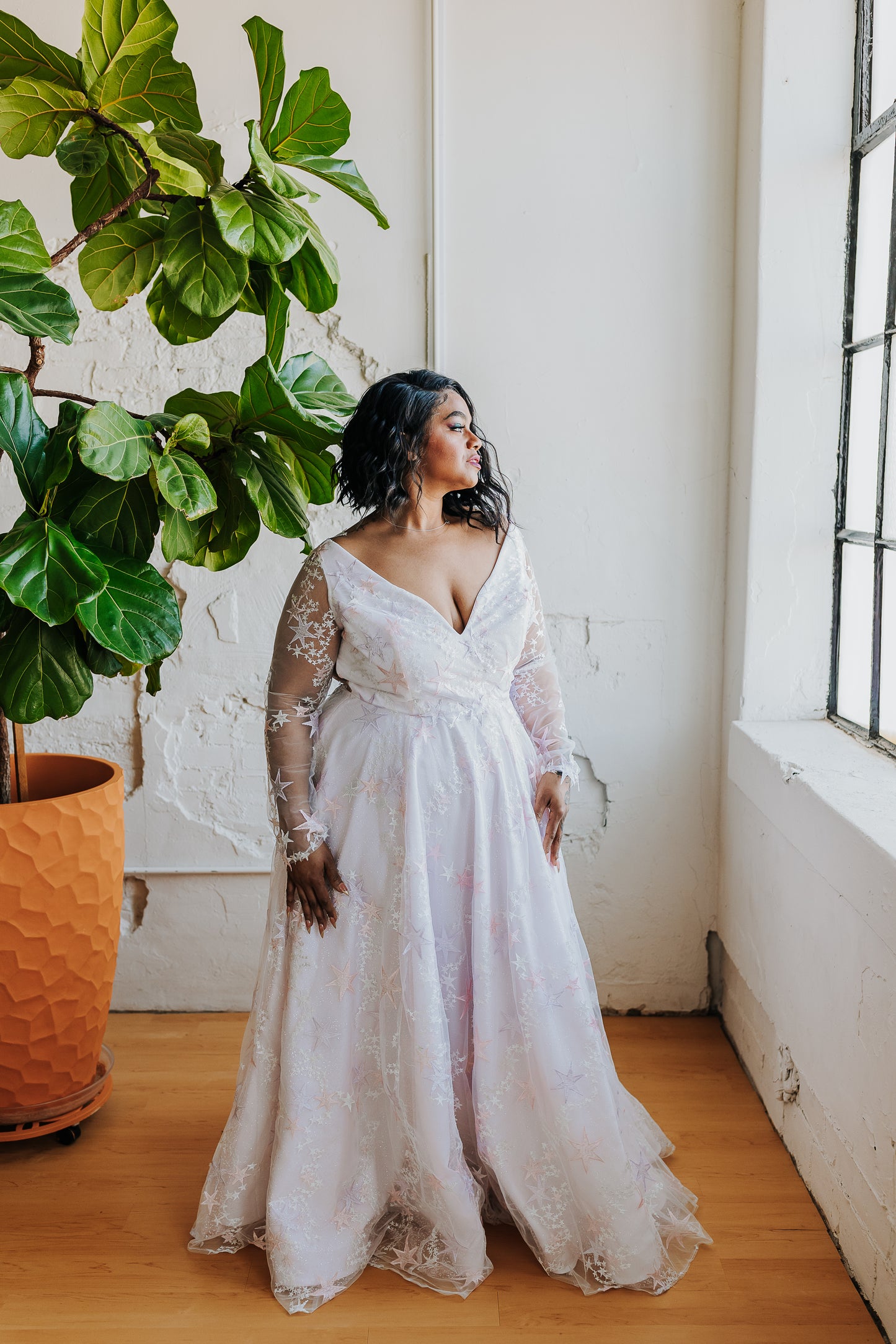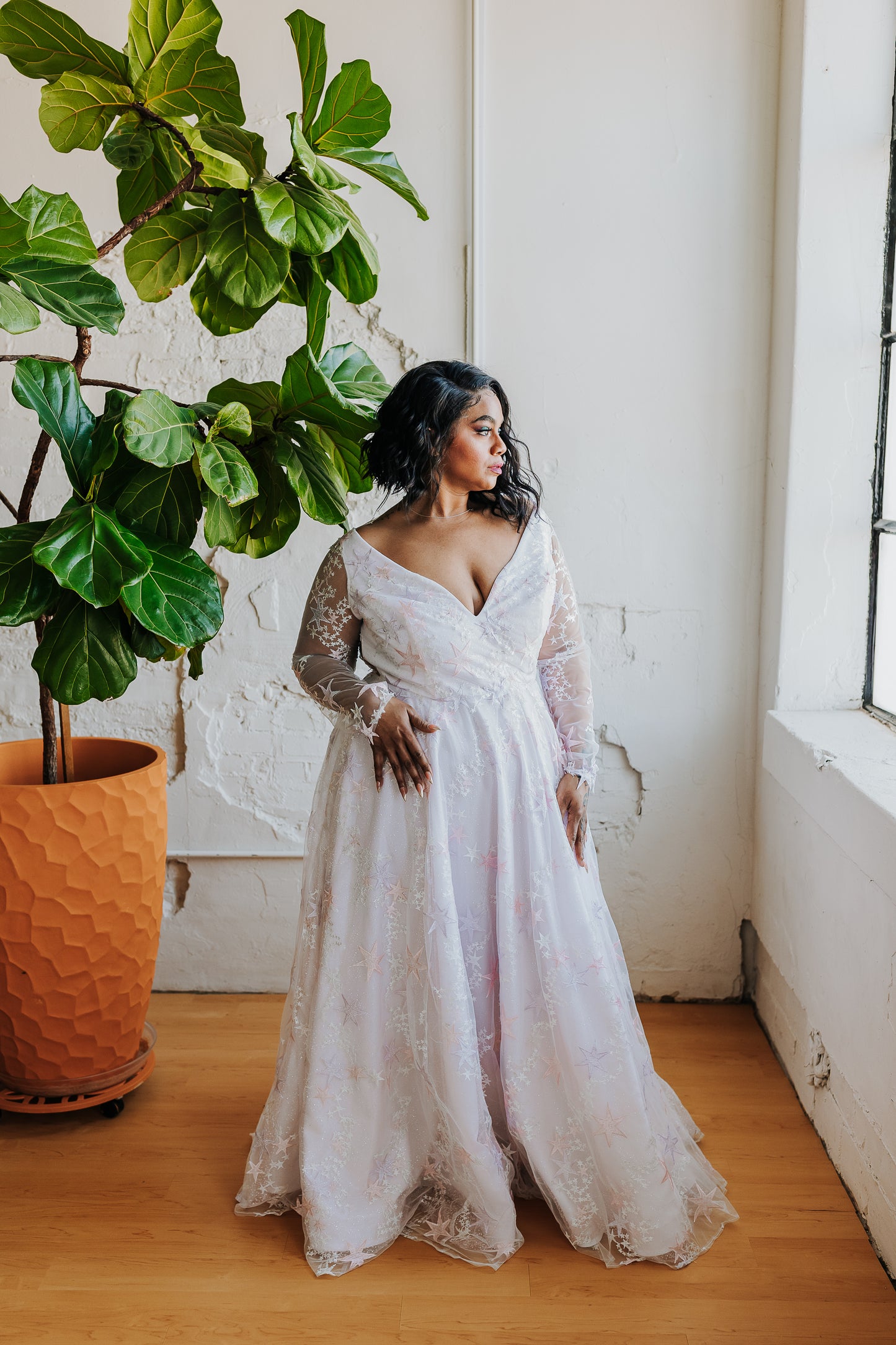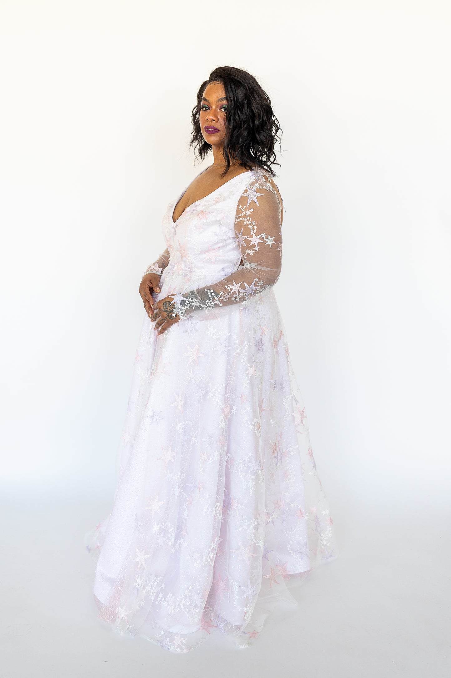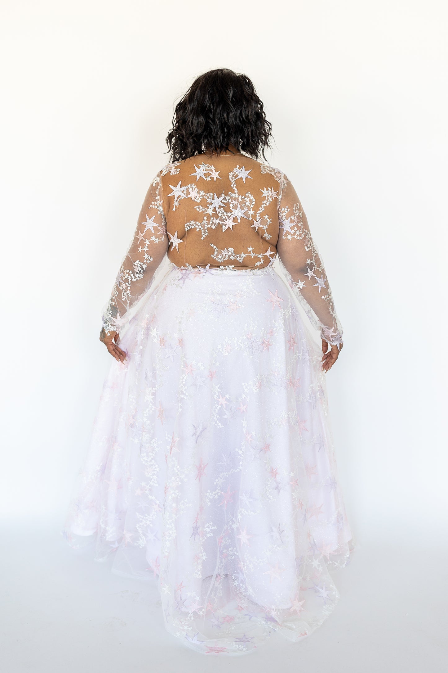 The Artemis Gown is a sparkly, star-studded modern gown packed with celestial details!