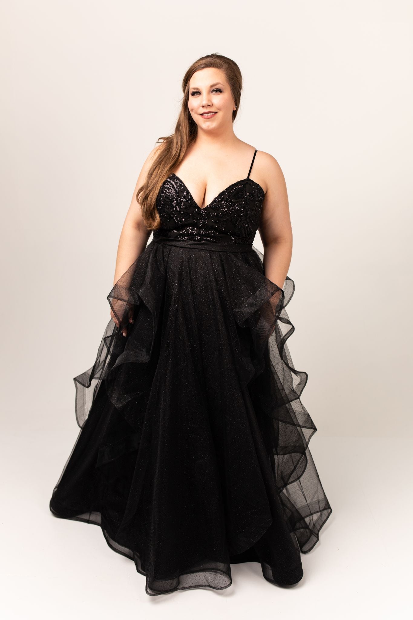 Cierra Gown with Cascading Glitter Tulle Skirt