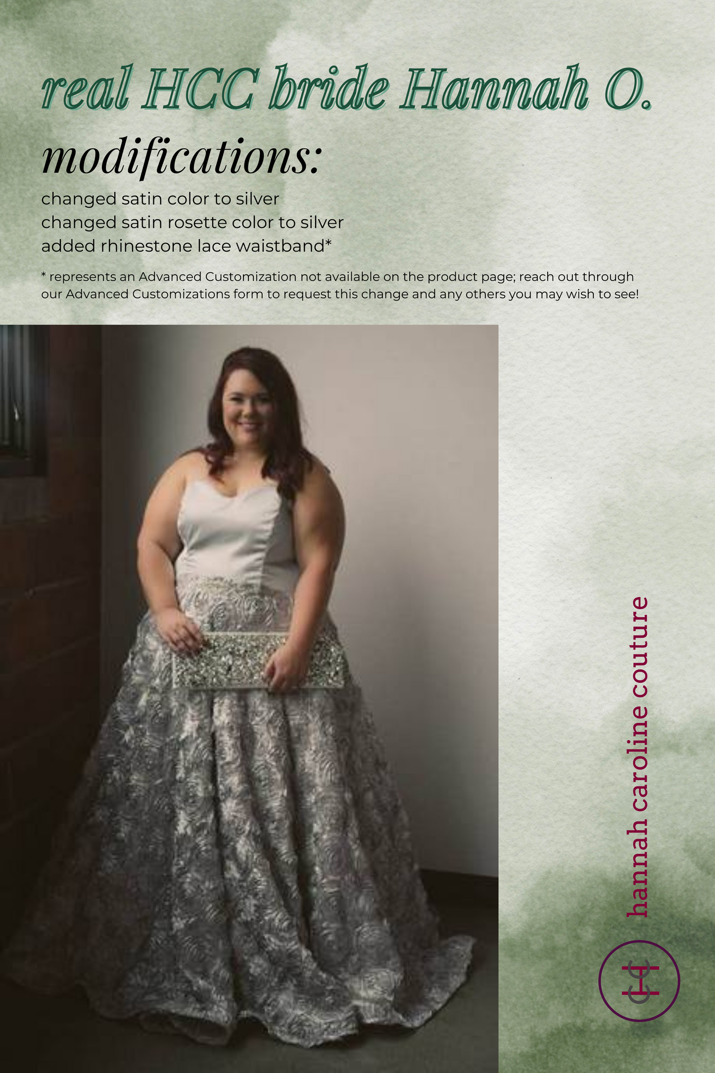 All Hannah Caroline Couture garments are made to your measurements and preferences. We have no standard size chart, and we offer free custom sizing always. All sizes and measurements are welcome. After your order is placed, the designer will email you with a link to schedule a free 15-minute video call to take the specific measurements we'll need. These video calls help to ensure sizing accuracy, minimize your alterations costs, and give you a chance to meet + chat with the person who will be making your dress. While custom sizing drastically reduces your alterations costs, some alterations may still be necessary.