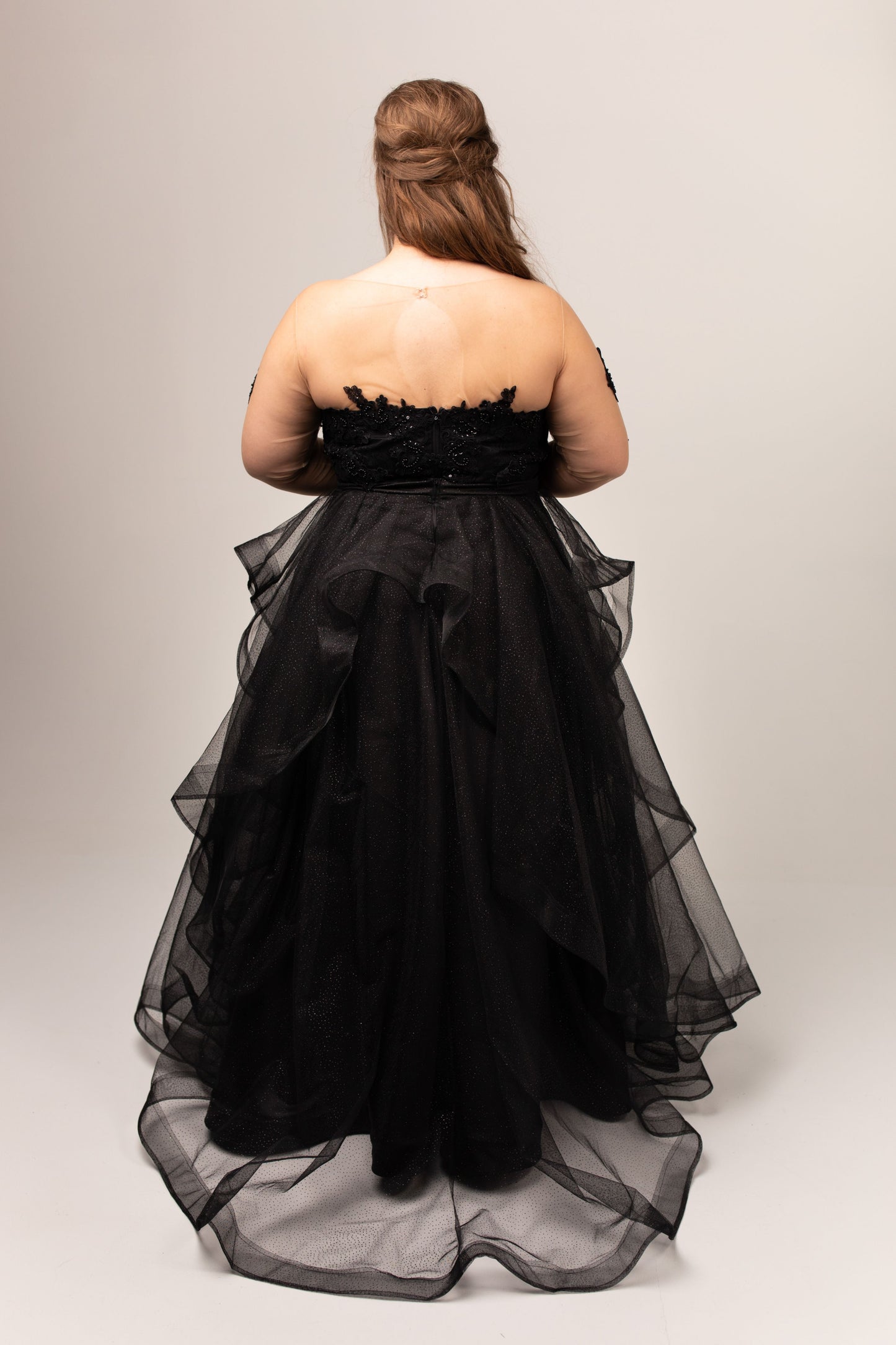 The Zara Gown with Cascading Glitter Tulle Skirt is our modern and sexy take on a classic, dramatic sparkly tulle ball gown.
